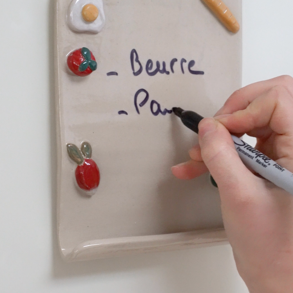 Une petite plaque en céramique aimantée pour griffonner tout ce qui vous passe par la tête : liste de courses, rendez-vous, messages doux... pratique et mignon !